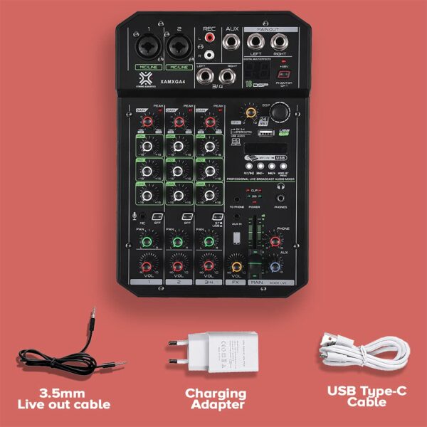 Elevate your audio experience with the XAAM08, a versatile 8-channel audio mixer designed for live events, home recording, and DJ mixing. With USB and Bluetooth connectivity, seamlessly connect your laptop or smartphone for wireless audio streaming and recording.